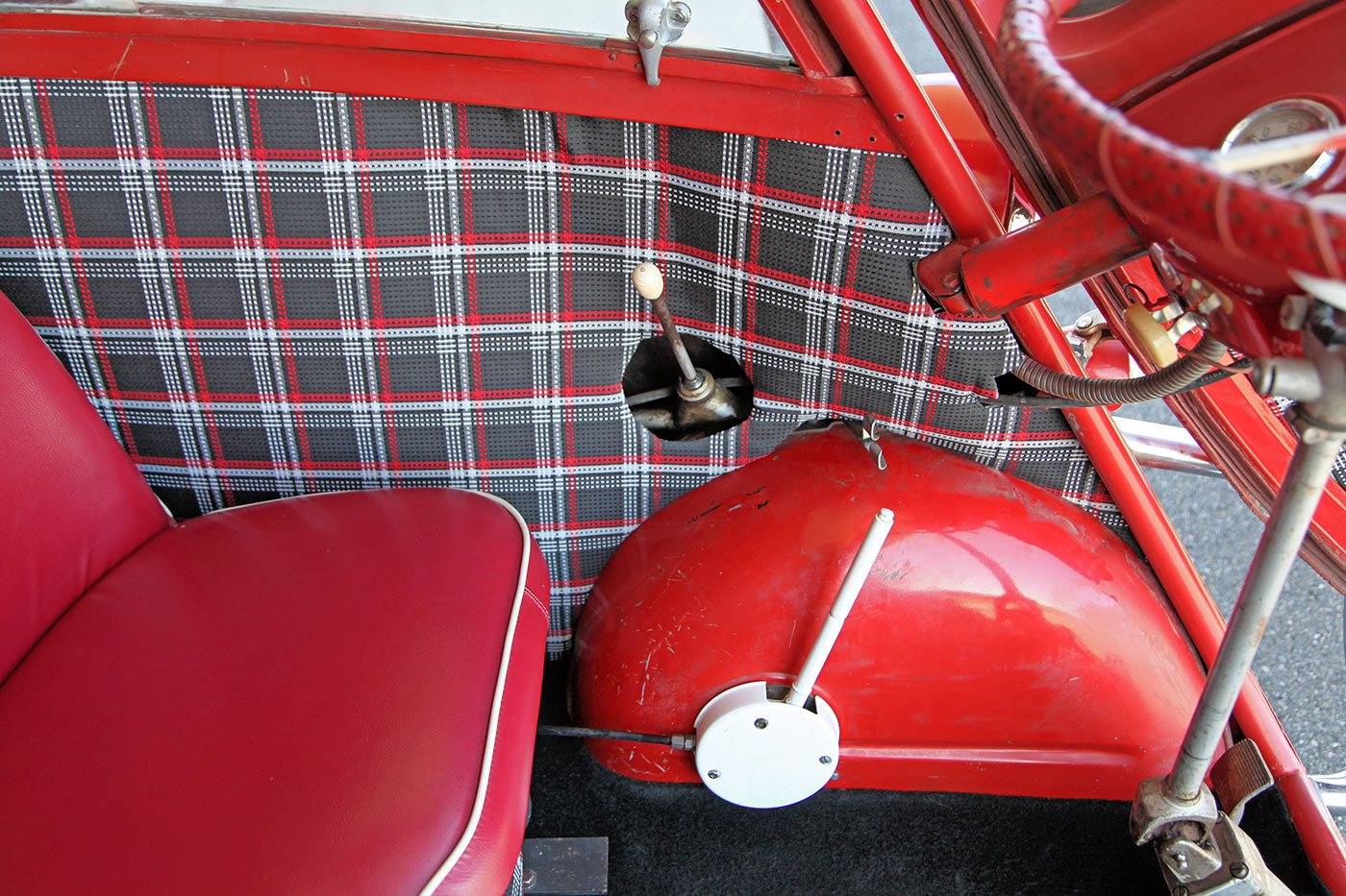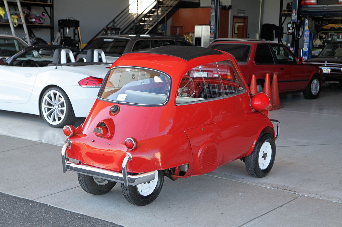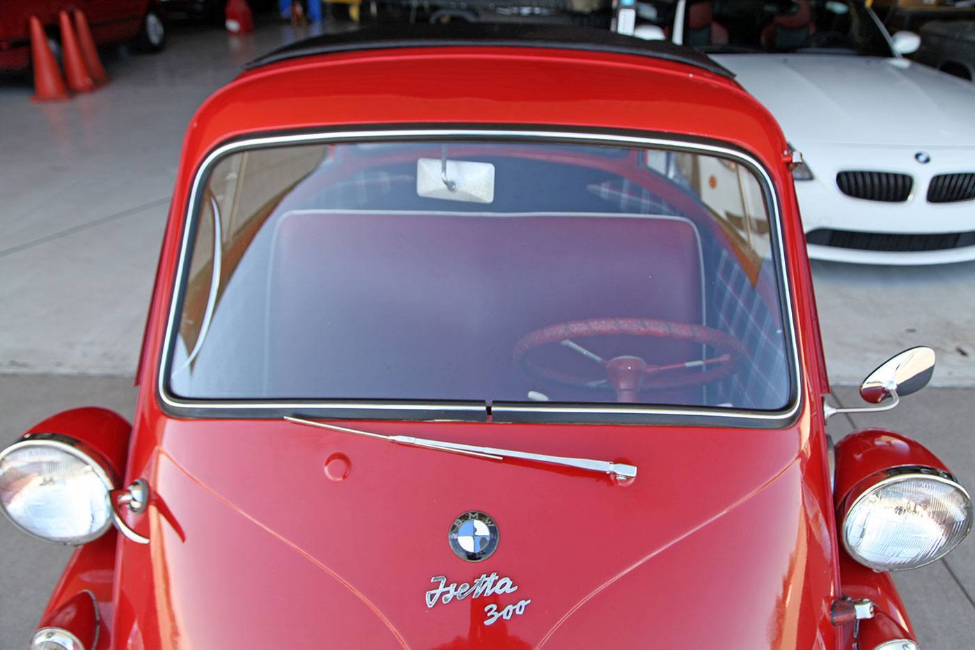 We found this 1957 BMW Isetta 300 Moto Coupe DeLuxe in the garage of one of our neighbors—of all places! Finished in full red with a refurbished plaid interior, it is a rare example that is a largely rust-free running and driving Isetta, at an attainable price point. Documentation on it is sparse, other than a clean Colorado title, the VIN badge, and a Rocky Mountain Isetta Club sticker. The cosmetic condition is presentable, but definitely not perfect. We would describe it as a Hagerty Grade 4, which in a word is “fair.” Its mechanical condition is similar; it starts every time and runs nicely, but it does have moderate oil leaks and needs brake and suspension work. Luckily, parts are relatively available and its design is inherently simple. It would be a great candidate to sort a little and enjoy as it is, or restore to concours condition. We have priced it accordingly and look forward to seeing what the next owner does with it!