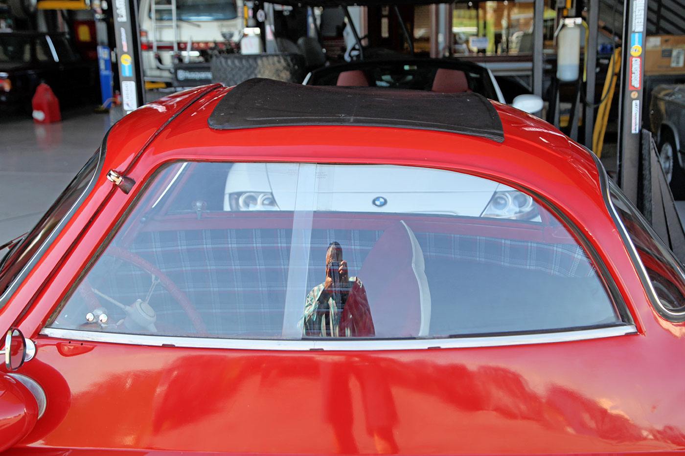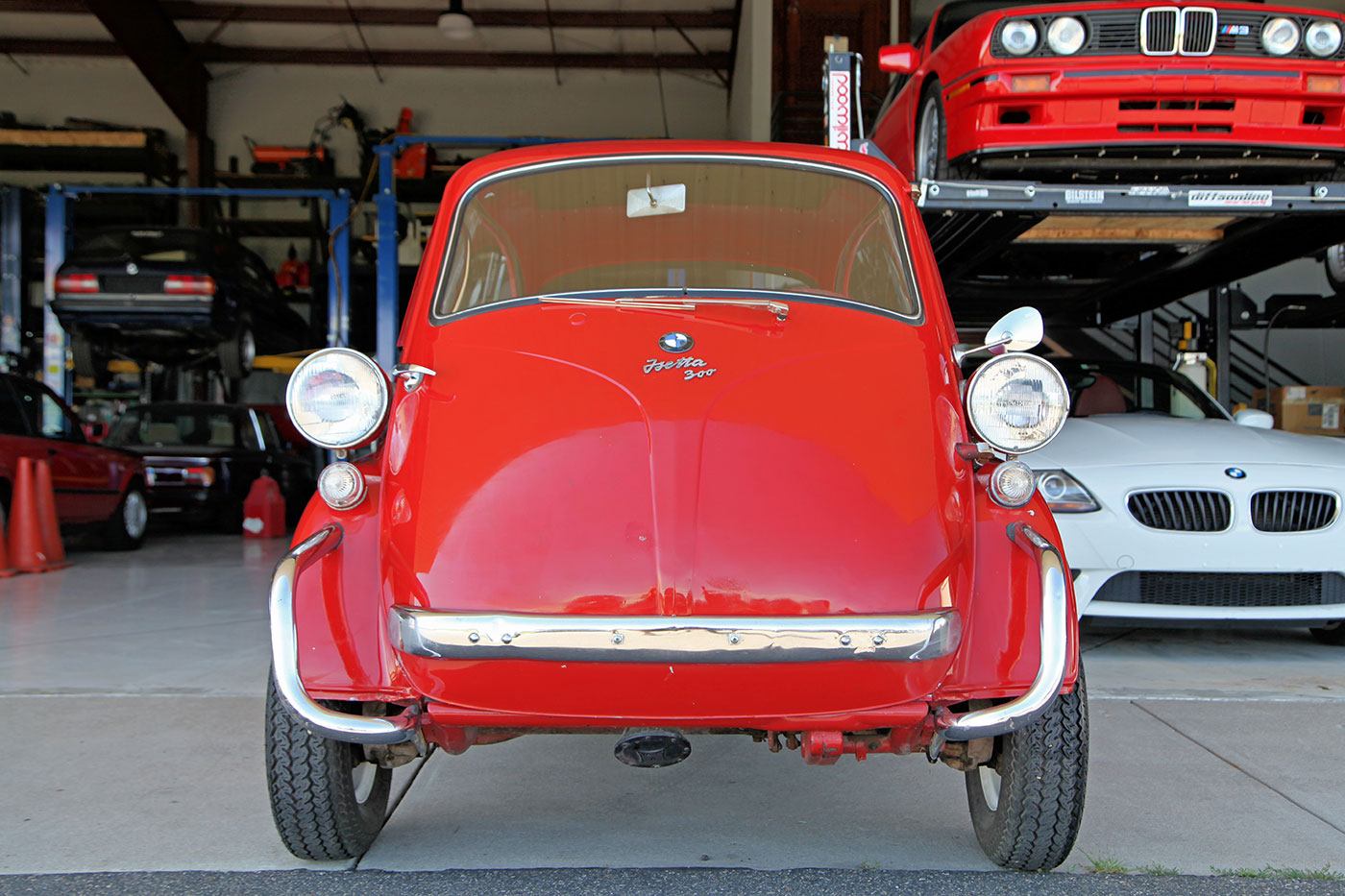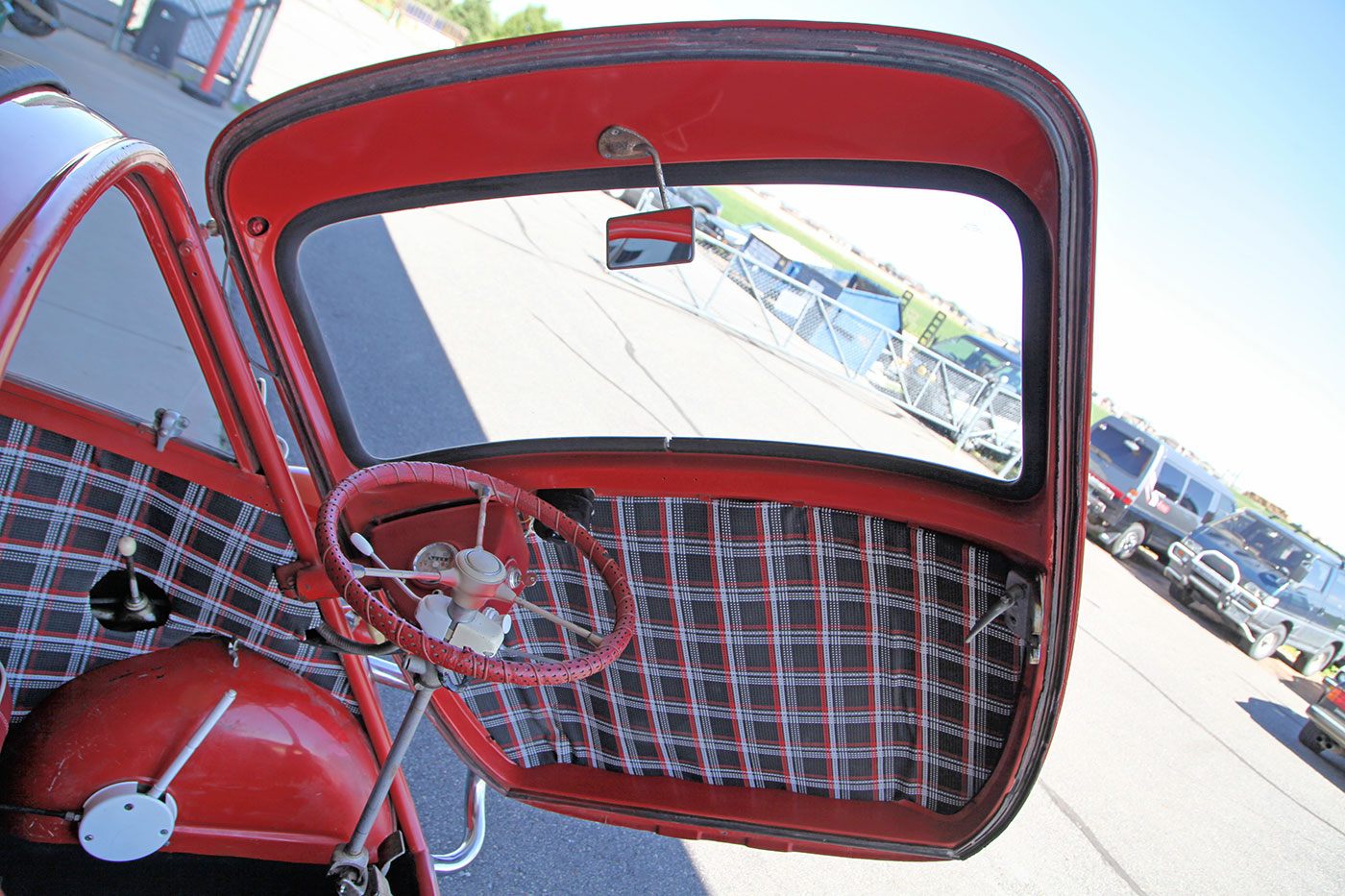 We found this 1957 BMW Isetta 300 Moto Coupe DeLuxe in the garage of one of our neighbors—of all places! Finished in full red with a refurbished plaid interior, it is a rare example that is a largely rust-free running and driving Isetta, at an attainable price point. Documentation on it is sparse, other than a clean Colorado title, the VIN badge, and a Rocky Mountain Isetta Club sticker. The cosmetic condition is presentable, but definitely not perfect. We would describe it as a Hagerty Grade 4, which in a word is “fair.” Its mechanical condition is similar; it starts every time and runs nicely, but it does have moderate oil leaks and needs brake and suspension work. Luckily, parts are relatively available and its design is inherently simple. It would be a great candidate to sort a little and enjoy as it is, or restore to concours condition. We have priced it accordingly and look forward to seeing what the next owner does with it!